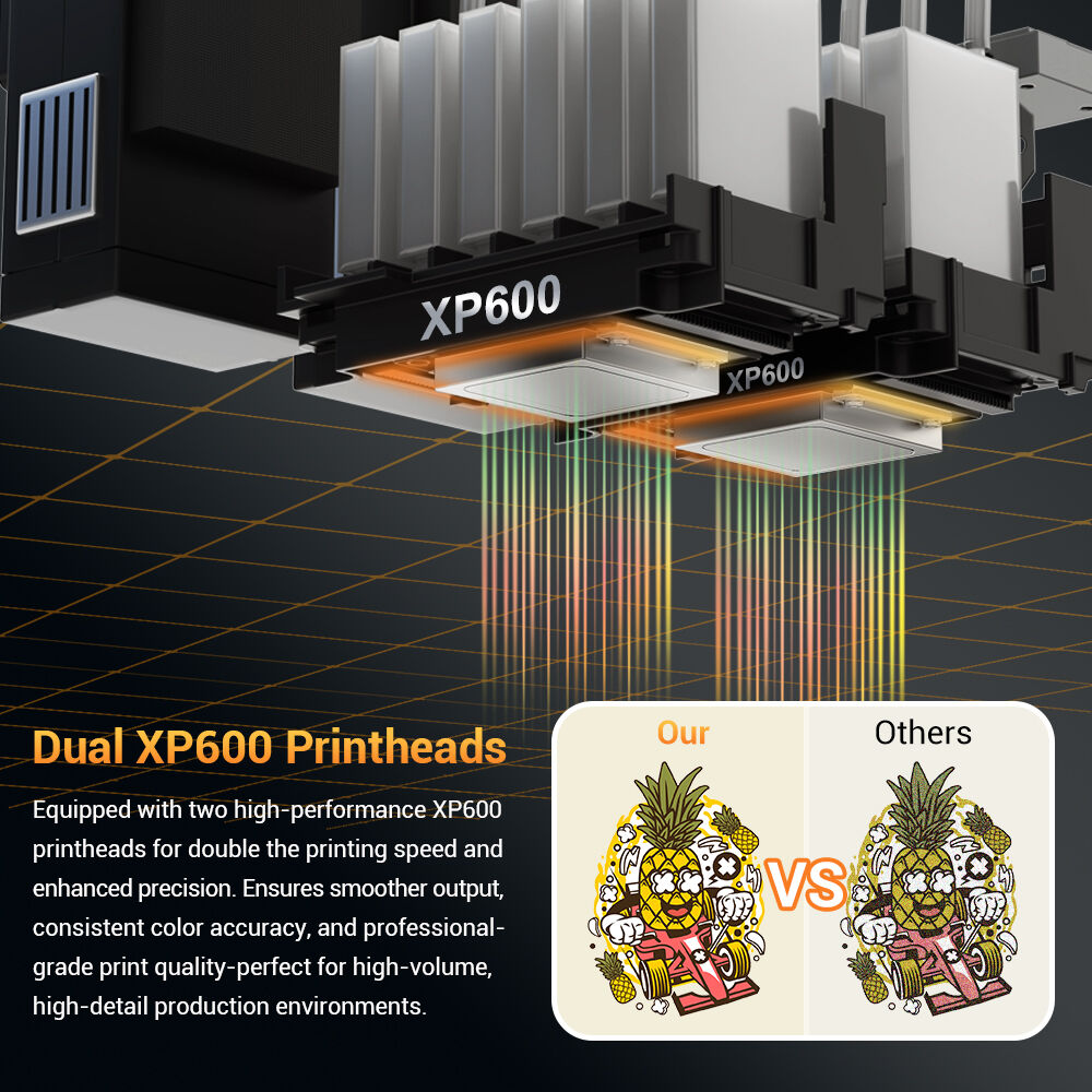 Equipped with two high-performance XP600 printheads for double the printing speed and enhanced precision. Ensures smoother output, consistent color accuracy, and professional- grade print quality-perfect for high-volume, high-detail production environments.