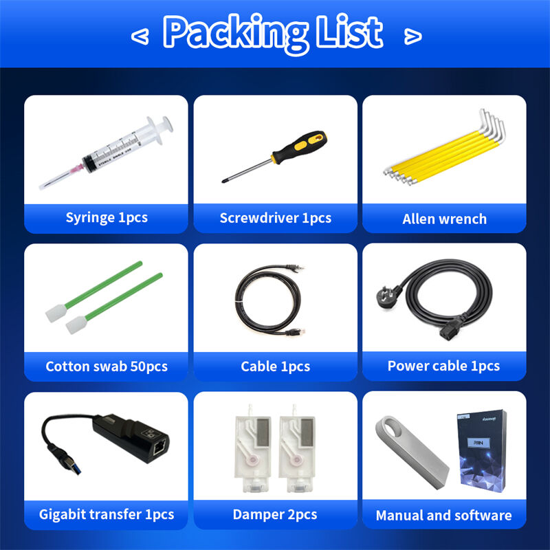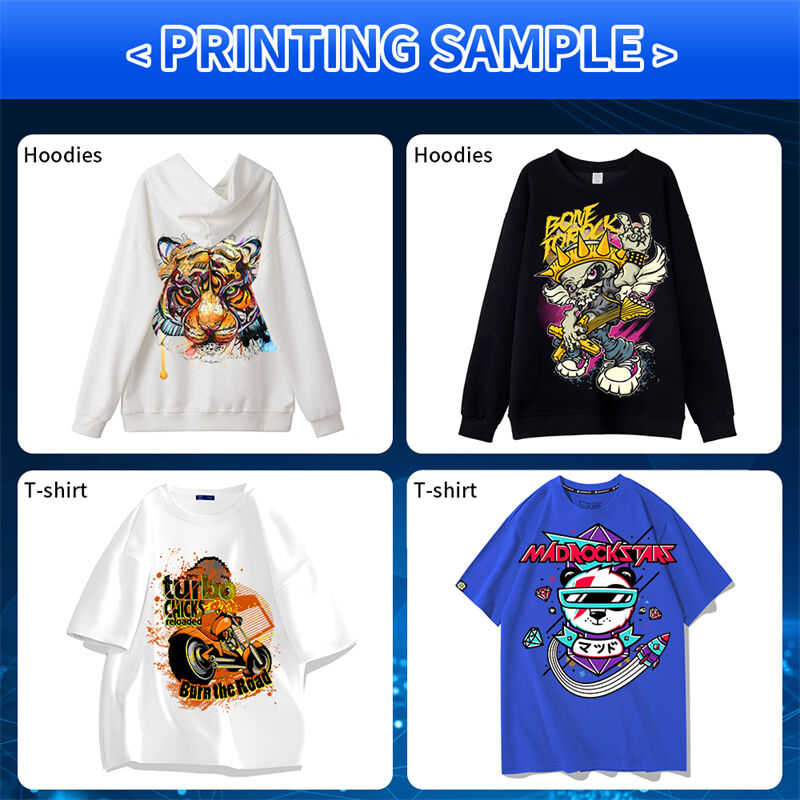 1.Ink color:CMYK+WW WWWWWW with negative pressure smart ink droplet technology. printing bright and delicate colors, the best choice for DIY printing clothes